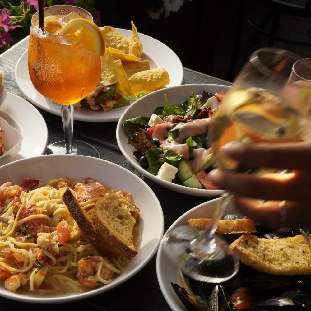 Outside on the patio is where you want to be, and we have the space to accommodate your whole crew.